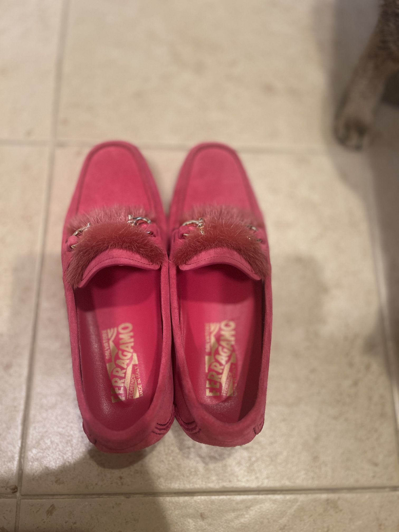 Ferragamo Loafers Made In Italy Suede Pink 5.5M