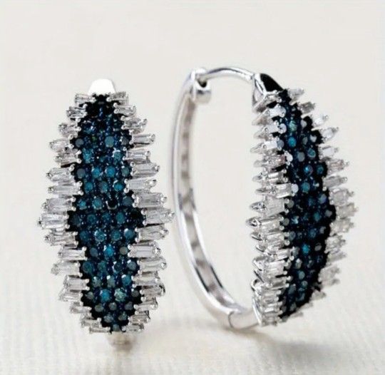 Exquisite Micro Pave Sapphire Blue 14K White Gold-Plated Cubic Zirconia Earrings