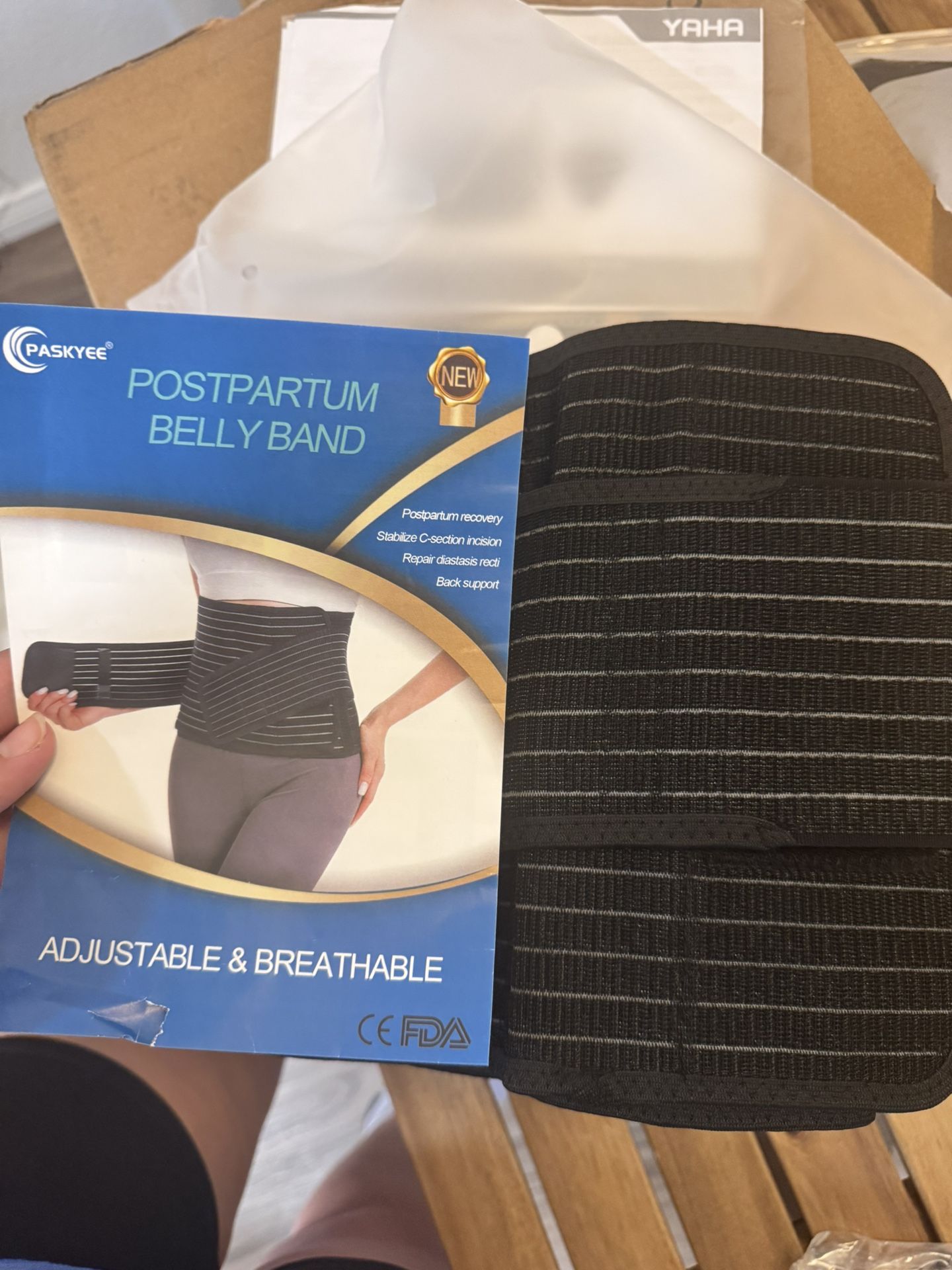Paskyee Postpartum Belly Band, Abdominal Binder Post Surgery Belly Wrap, C Section Recovery Must Haves, Girdle For Postnatal Care, Waist/Pelvis Belt For Back Pain Relief Black L/XL