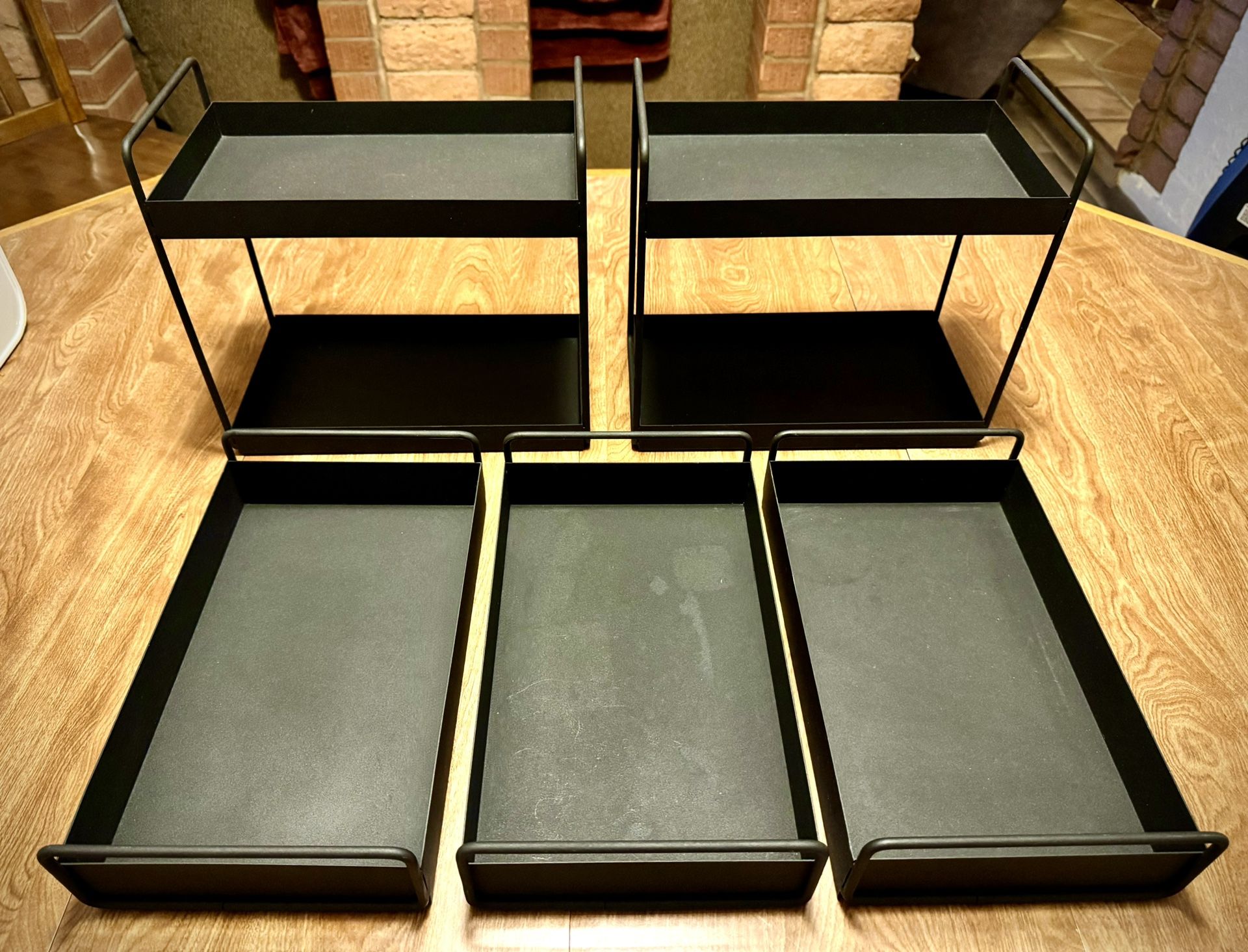 Solid Sturdy Metal All for $25 Shelves $10 each H 11” W 12” D 7” Trays $5 each 3/$10 H 3” W 13” D 8”