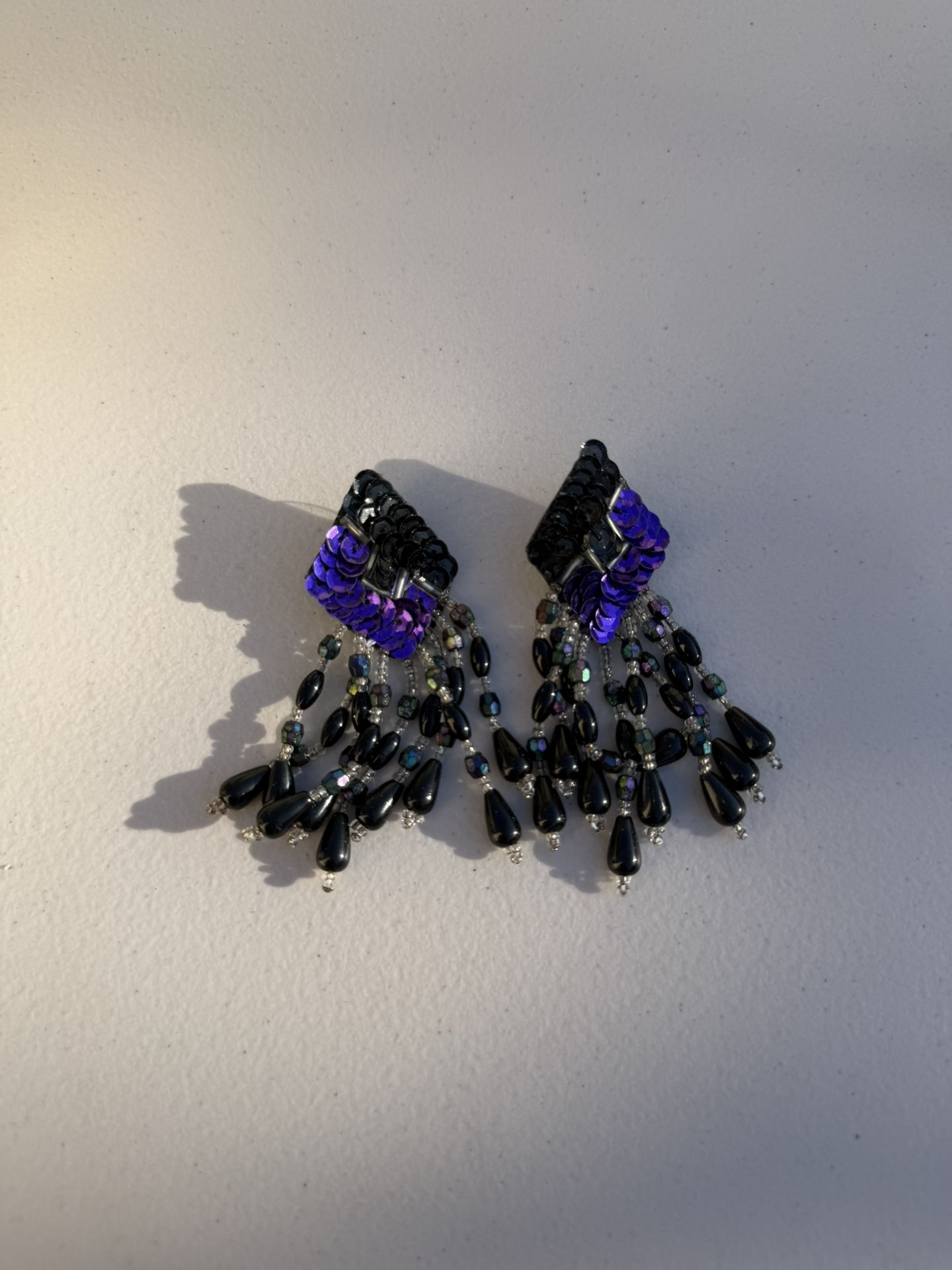 These vintage-style black and iridescent blue beaded dangle earrings are a unique and stylish accessory for women. Made with glass, they feature a beautiful blue main stone and secondary glass stones, adding a touch of elegance to any outfit. The undated vintage design and beaded style make these earrings stand out with a classic yet modern flair, perfect for adding a pop of color to your look.