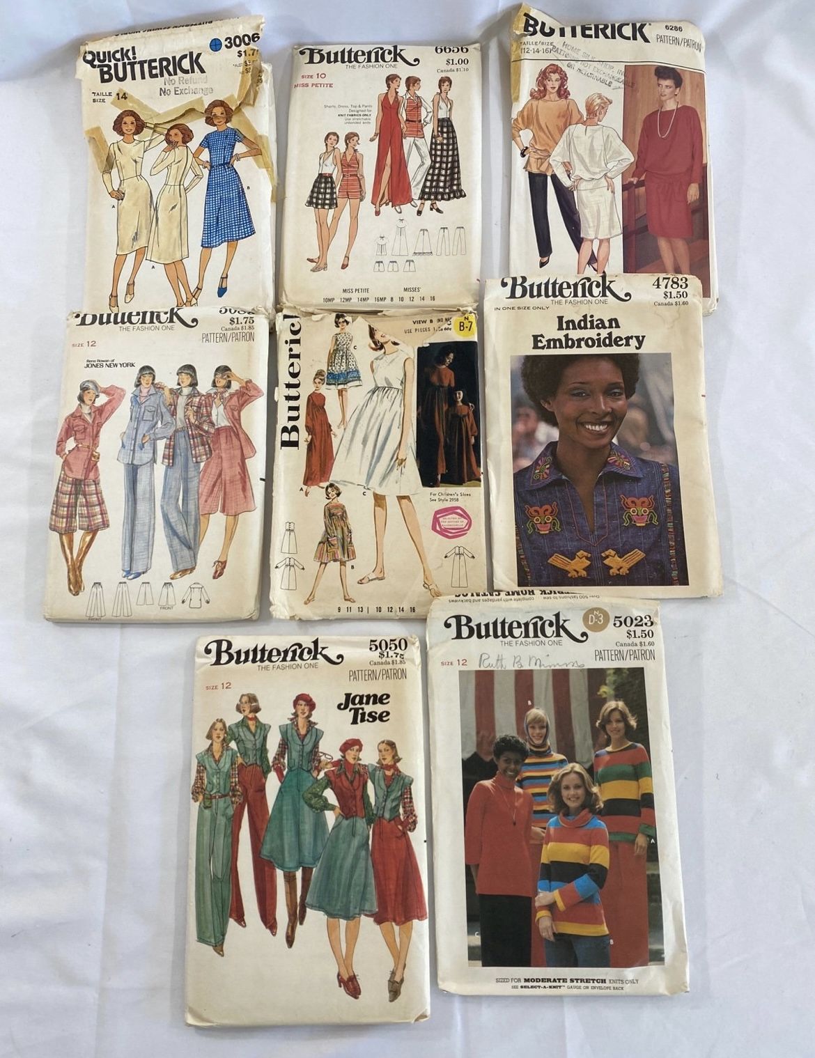Lot of 8 Butterick Pattern Miss Dress Skirt Indian Embroidery Jacket #42 Not sure if they are cut or uncut.
