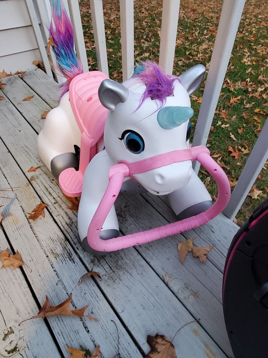 Ride on unicorn $25 and bumper kart $35