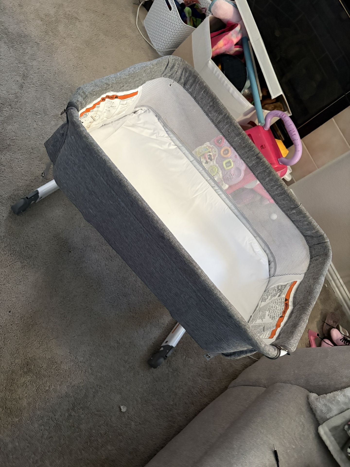 Loved this baby bed, zips down to level the side of your bed. Smoke free and pet free home. There is a tiny little tear on the net. That’s how I bought it from someone! Shampooed it so it’s clean and ready to go! Pick up in Aurora near Hampden and tower.