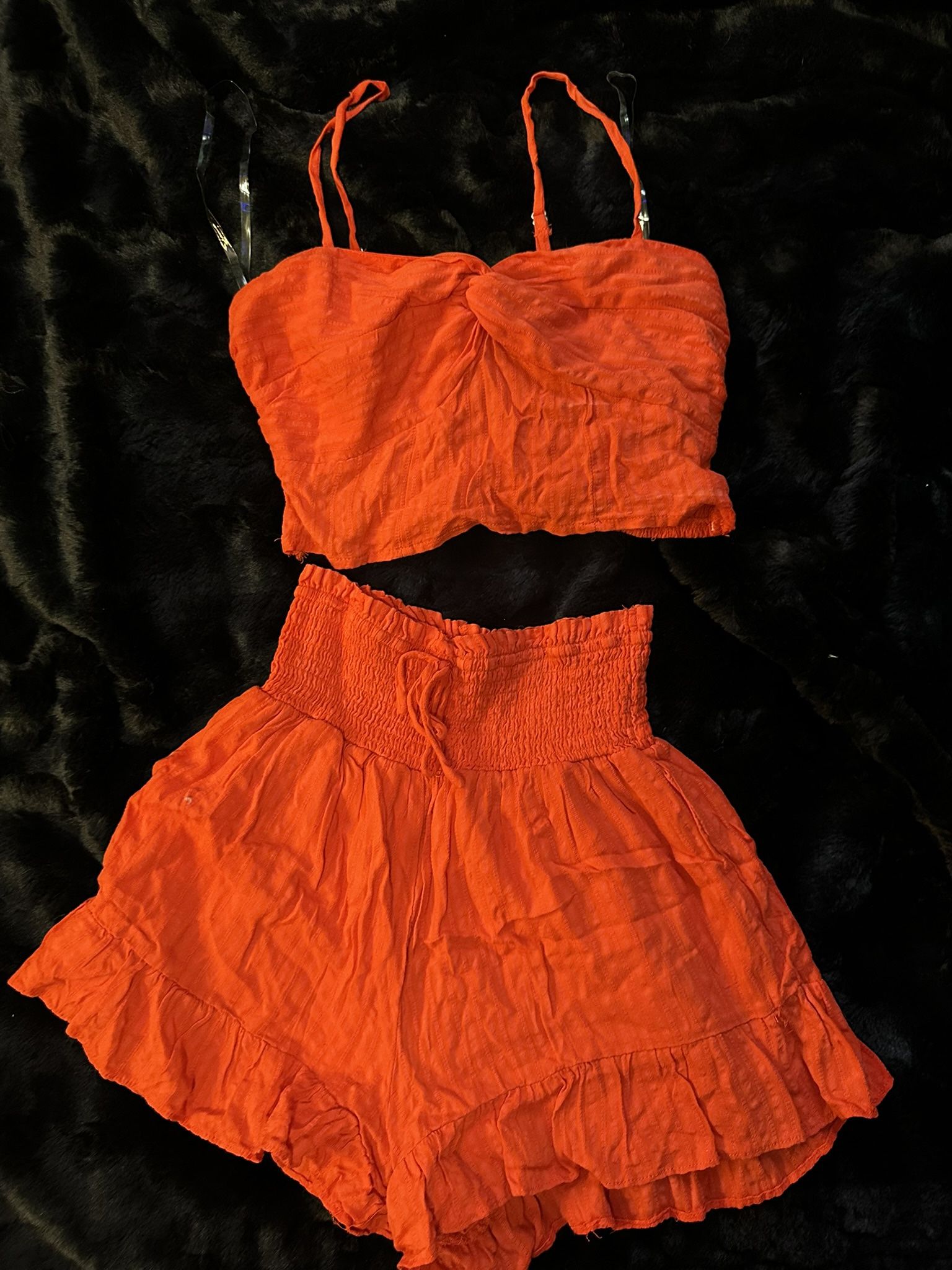 Orange shorts and top matching set. Never worn Elastic bands adjustable straps for size
