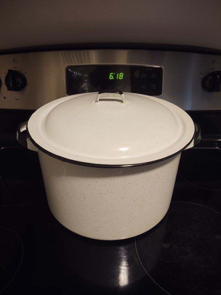 Large Vintage Enamelware Pot With Lid