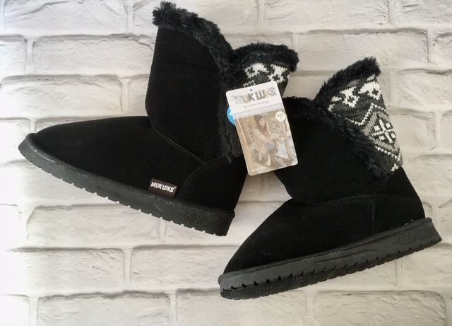 Women’s Muk Luks Sweater Boots, Ebony. Size 7. Sherpa Lining. Water Resistant. Very Warm! NWT. #mukluks #winterboots #sweaterboots #womensboots #blackboots