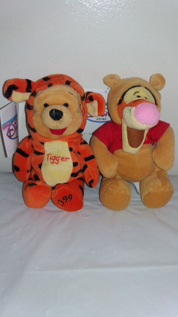 New with tags Disney Pooh as Tigger and Tigger as Pooh Beanie Babies
