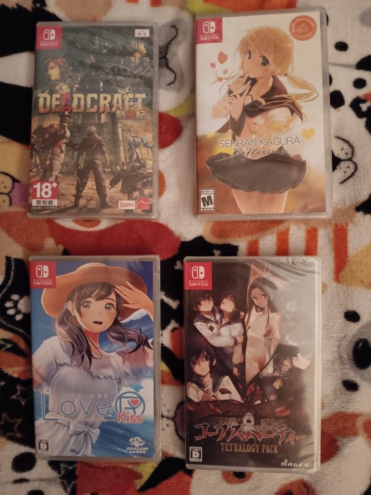 All Brand New Sealed Nintendo Switch Games. Senran kagura reflection, Dead Craft, Corpse Party Tetralogy and Love R Kiss.All are in excellent condition except Senran Kagura Reflection It has crinkleing on the side of the front cover .Bundle Only. Local pick up only Tucson Arizona. Also I have a lot of really good stuff check my listings I give 5 dollars off if you buy more than one thing. Meet up place wetmore walmart. You have to meet me.I hope to meet you soon. π