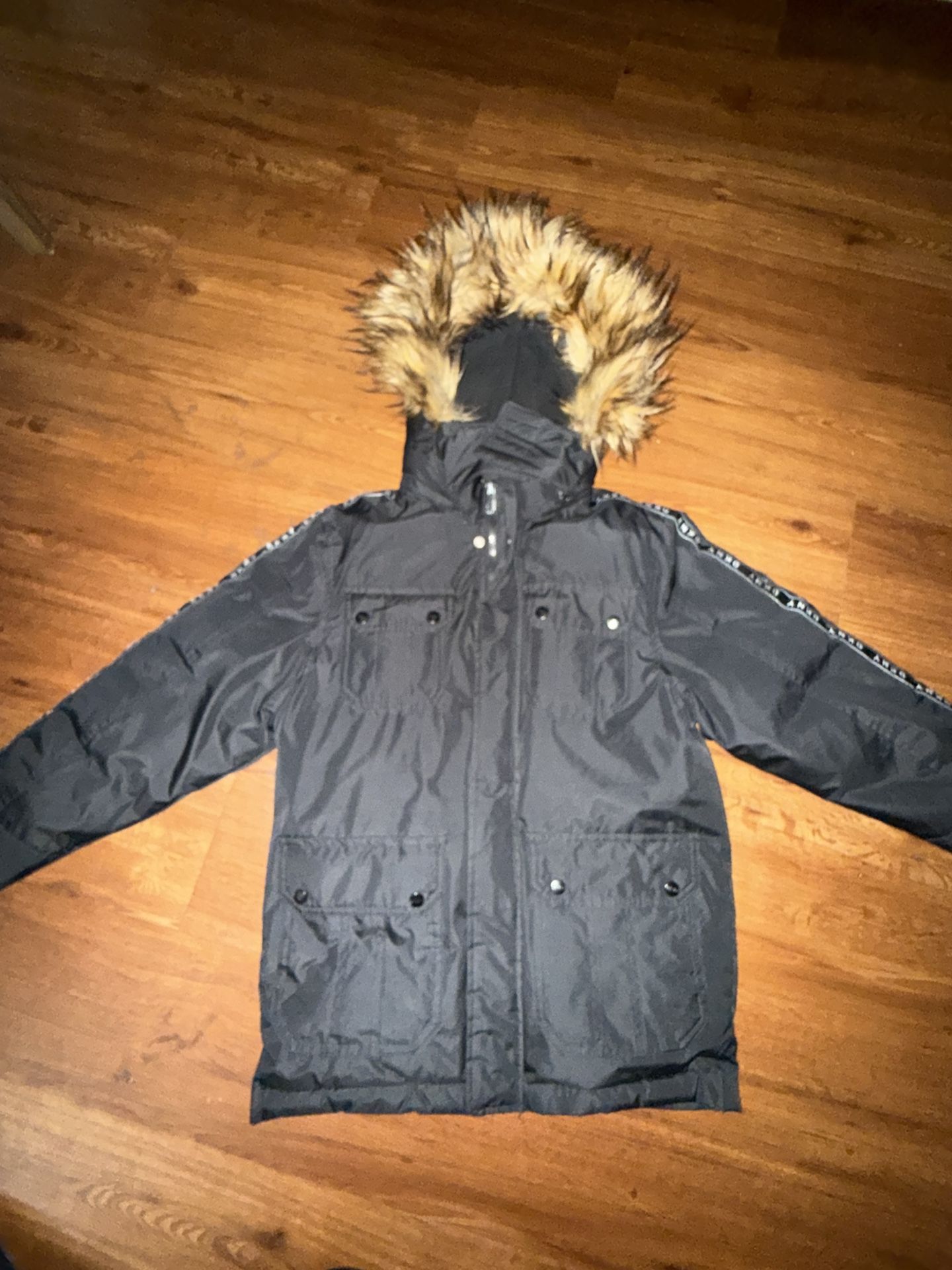 It is a heavyweight, weather-resistant coat designed for winter wear, often featuring a removable hood with a faux-fur trim and logo tape trim along the interior and sleeves Great condition Boys size Medium $10 Pick up only near Sutter Health Park West Sacramento