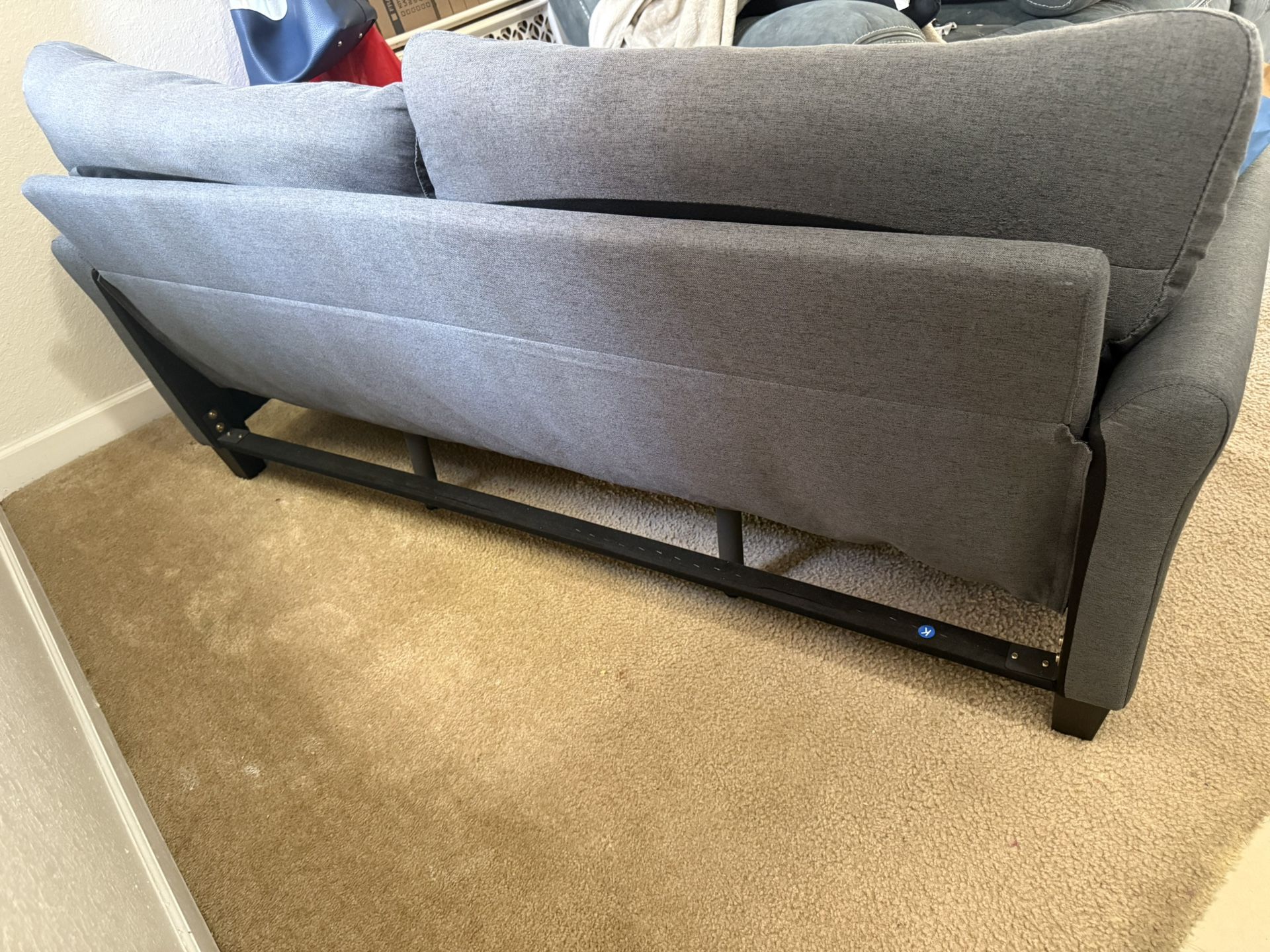 I’m selling the sofa because I’m moving . Is really comfortable. It looks like new. We only have had it for a year. There’s no rip and no stains on it .