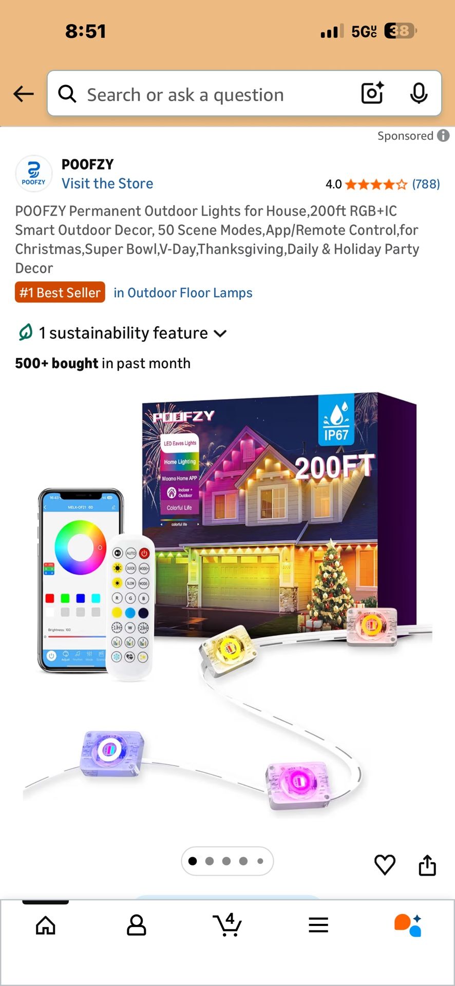 POOFZY Permanent Outdoor Lights for House,200ft RGB+IC Smart Outdoor Decor, 50 Scene Modes,App/Remote Control,for Christmas,Super Bowl,V-Day,Thanksgiv