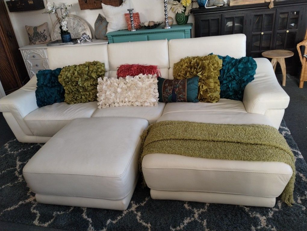 CUTE LEATHER L SHAPE SECTIONAL WITH OTTOMAN AT PICKY PINCHERS 3643 5TH AVE N ST PETE OPEN NOON TO 6 FREE DELIVERY 109"L 69"W 16"H