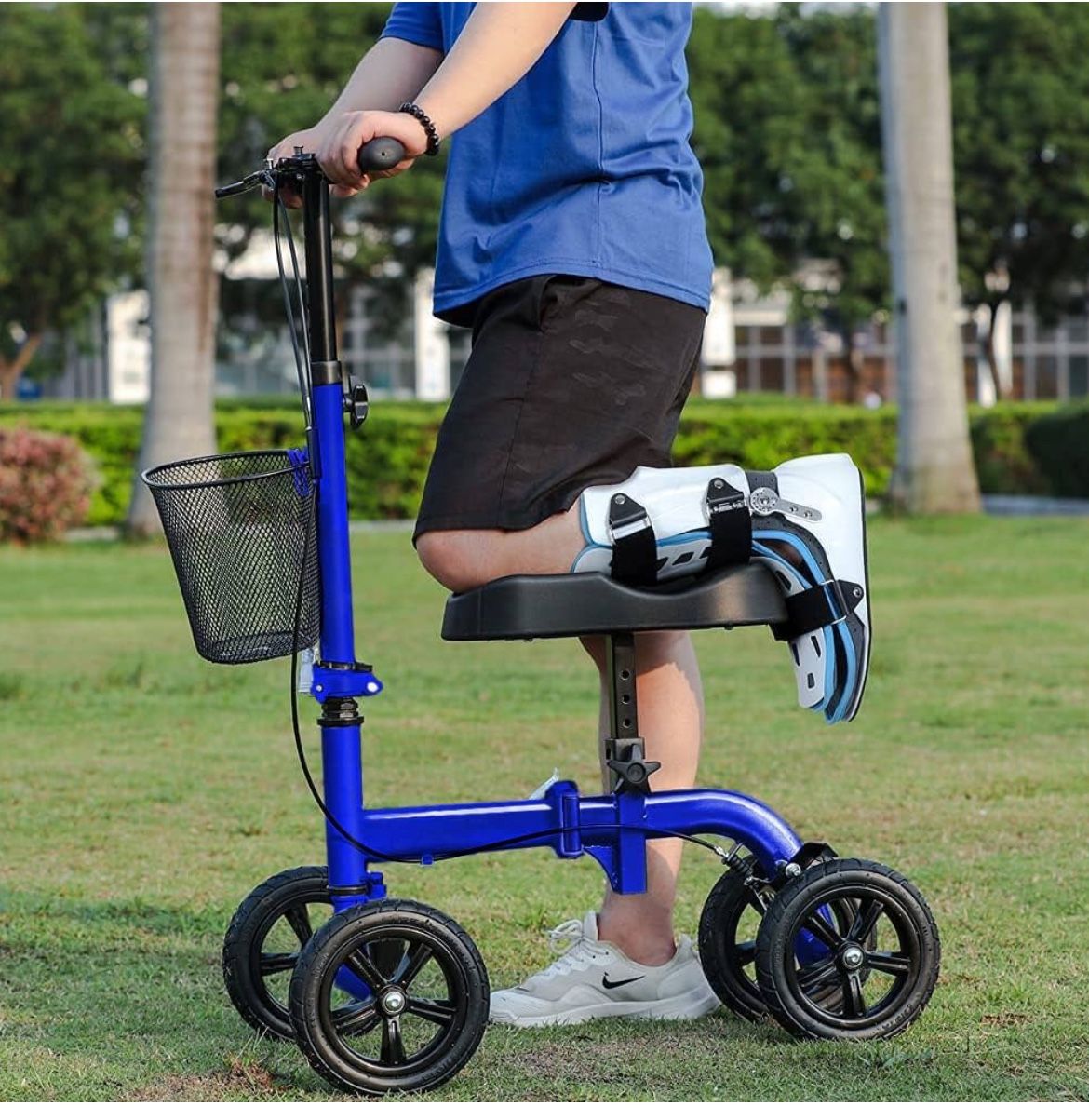 RINKMO Knee Scooter, Foldable Knee Scooter Walker Economical Knee Scooters for Foot Injuries Best Crutches Alternative (Blue)