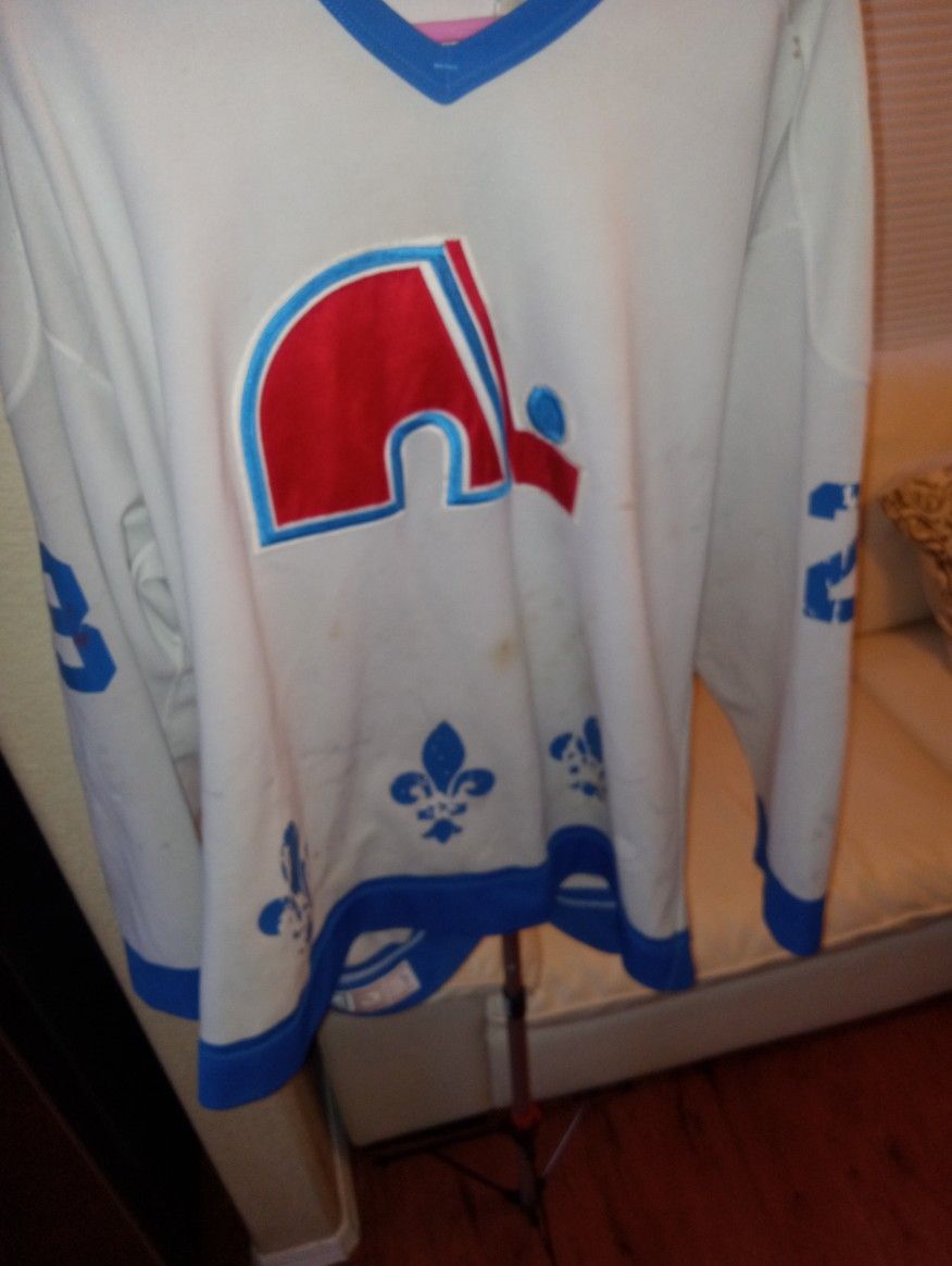 An authentic game worn jersey of Paul gillis. From 1987. Plenty of puck marks and some deterioration. XL. Nordiques are now Avalanche. Scottsdale pickup available 10-6 daily. Text (contact info removed)