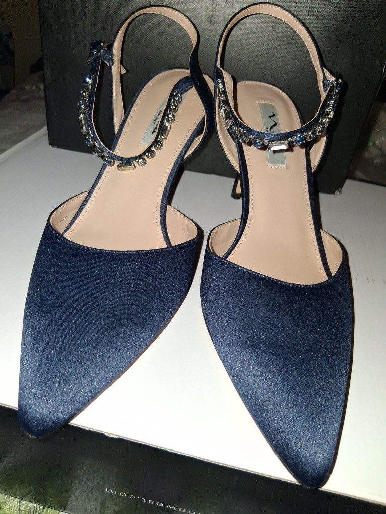Nina Tucker Crystal Dress Pump, New Navy Luster Satin Size 11 (w/o Box