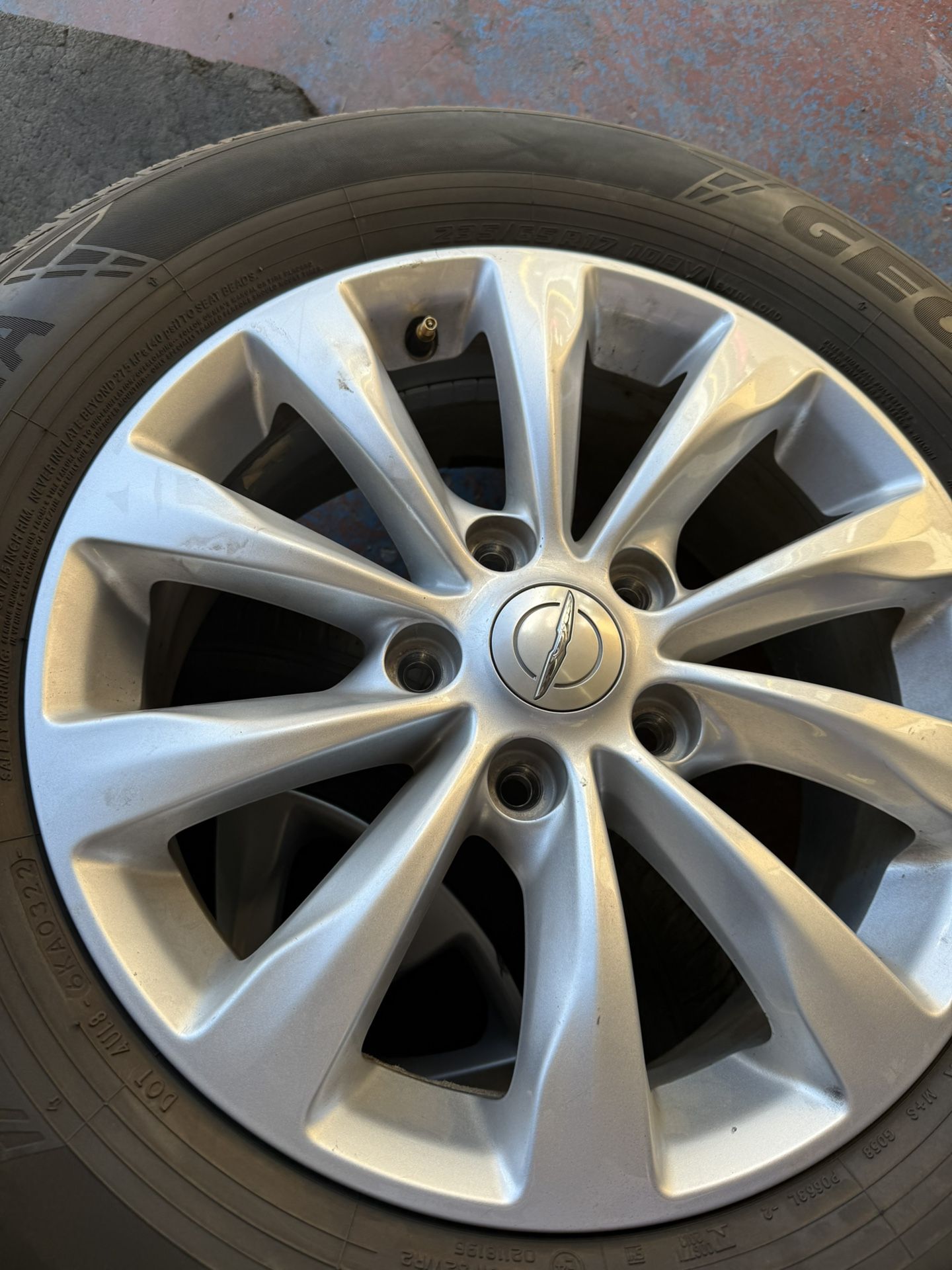 I am selling 4 Chrysler rims with new tires. Barely used . New tires. I think the hey fit the Chrysler van not a 300