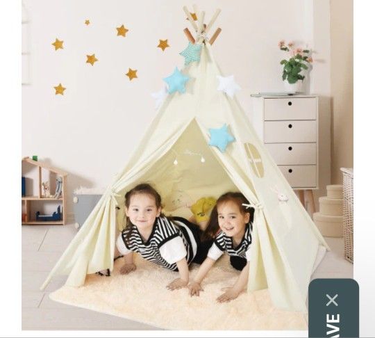 Foldable Kids Canvas Teepee Play Tent