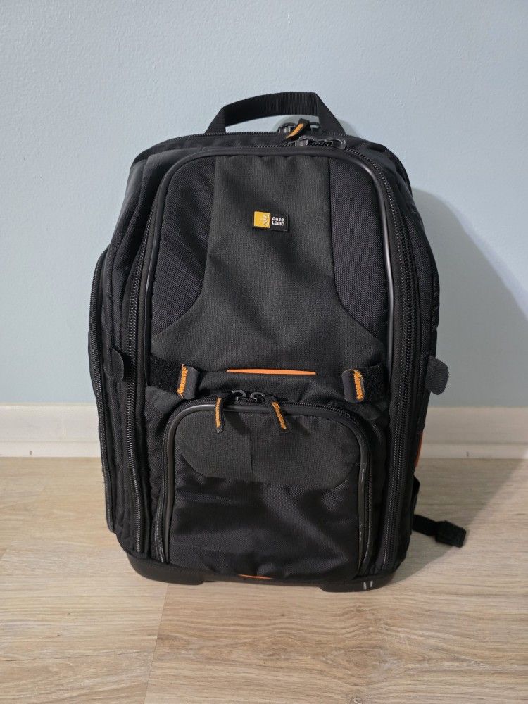 120.581 SLR Suspension System for Photographer Cameras • Holds SLR Camera & Lens Kit • Holds 16" PC or 17" MacBook Pro • Nylon Exterior with Waterproof EVA Base • Memory Foam on Interior Lid • Removable Shelves and Flexible Walls • Hammock System • Four Pockets • Tripod Strap • Carry Handle • Backpack Harness Straps This Case Logic SLRC-206 SLR Camera/Laptop Backpack in black is designed to carry and protect an SLR camera body with attached zoom lens plus accessories. The bag is made from nylon with a memory foam interior on the backpack lid to help protect the delicate LCD screen. The waterproof EVA base withstands the elements and allows the backpack to stand up on its own. Removable shelves and flexible walls create a fully customizable interior. A hammock system suspends the SLR camera above the bottom of the case, providing impact protection. The SLRC-206 has a computer compartment that is compatible with a 16" laptop PC and a 17" MacBook Pro notebook computer. The pack has 4 accessory pockets that allow fast access to memory cards and other small items. An industrial strength hook and loop straps on the side of the backpack can hold a tripod. The pack is carried by a handle or backpack harness straps. There is an Innovative strap management system that eliminates messy, hanging straps. • Nylon exterior • Waterproof EVA base withstands the elements and allows the backpack to stand up on its own • Memory foam on lid interior helps protect your delicate LCD screen • Removable shelves and flexible walls create a fully customizable interior • Zipper closure Hammock system suspends your camera above the bottom of case, providing superior impact protection Computer compartment (15.4 x 10.4 x 1") is compatible with 16" laptops and the 17" MacBook Pro notebook computer Four accessory pockets allow fast access to memory cards and other small items Industrial strength hook and loop straps on side of backpack hold a tripod Carry Options Carry handle Backpack harness straps Innovative strap management system eliminates messy, hanging straps Holds an SLR camera body with attached zoom lens, a laptop, and accessories Good condition. Works great. Some scuff marks on the bottom. A little wear on side strap. A small slit in the front. See photos. Pick up in Plantation, FL