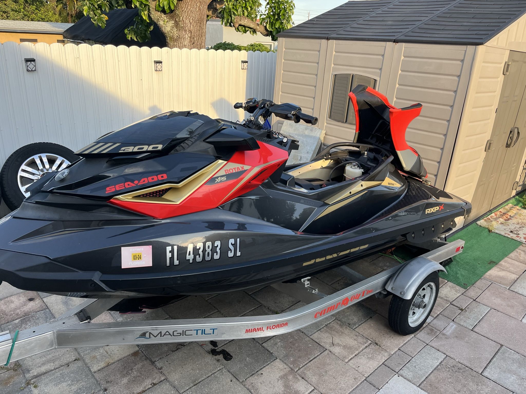 2019 Sea Doo RXT-X 300 with Magic tilt 2020 trailer and extras. Well maintained. Fast ski, runs excellent, needs nothing. All stock, 102 hours. Full service /oil change completed Comes with: large life jacket (2) small life jacket Available to show 24/7 Title in hand