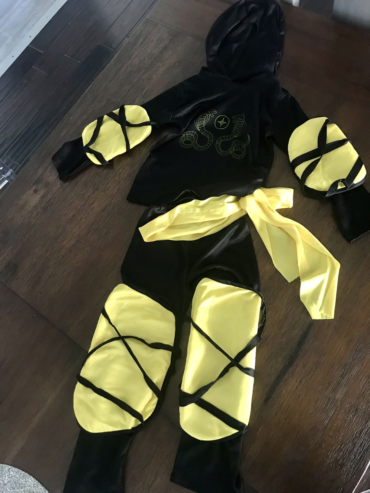 Size small (4-6y) Shirt, pants, face mask, leg pads, arm pads, belt