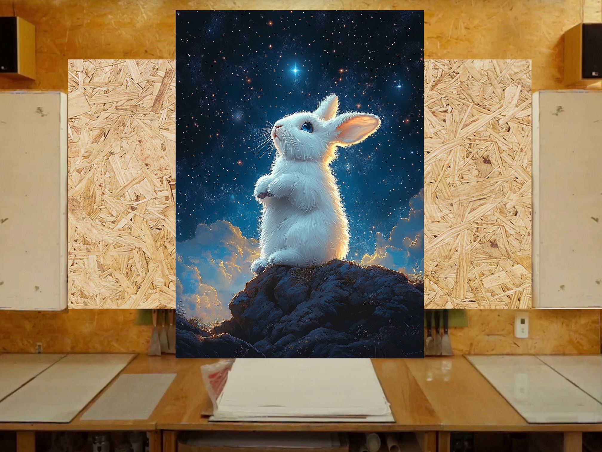 Big poster Check my listing, I have many options or send your own designs or Ideas for a design. This is a 3 feet by 4 feet glossy photo paper poster, is available on wrapped canvas and sticker vinyl ( different price for each option) The image is a image generated with artificial intelligence.