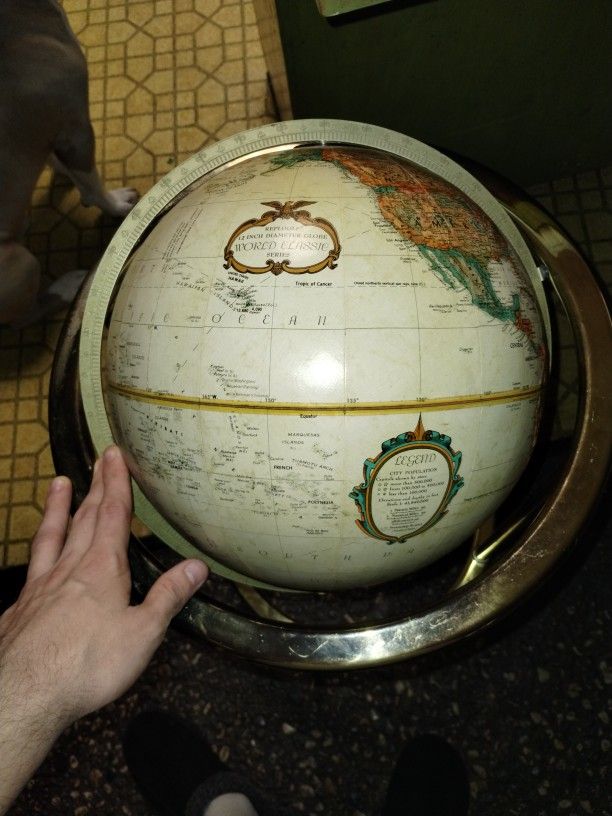 Vintage replogle globe drawn by Leroy M. Tolman similar globes are going for 500$ online. This one needs some work to the stand other then that everything else is in good condition
