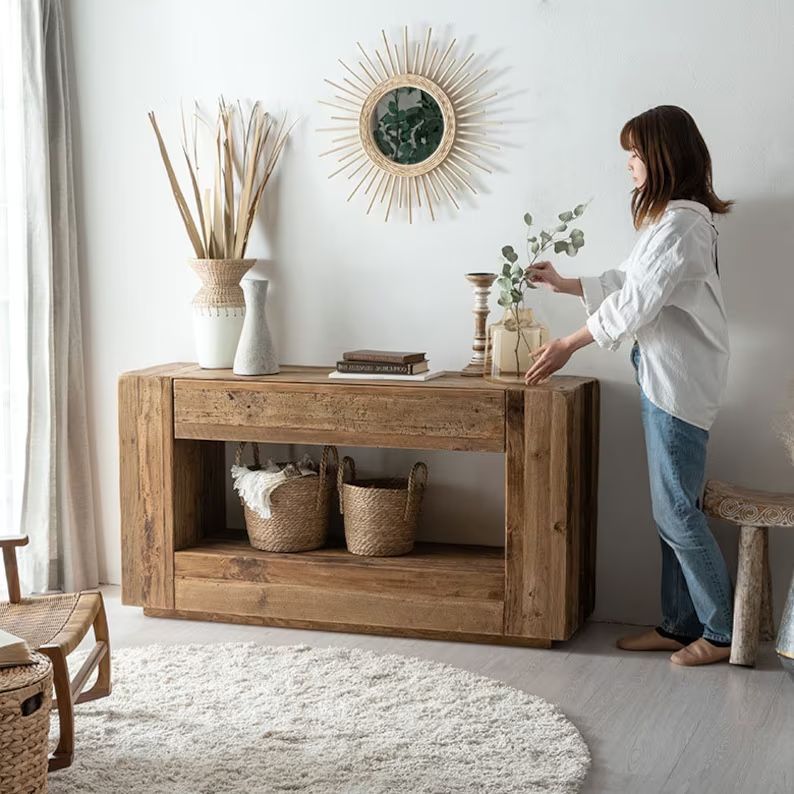 OUR #1 SELLER - SUPPLIES ARE LIMITED Crafted with precision, our consoles boast Authentic Reclaimed Wood sourced from a vintage hotel in Banff, Canada. Complete with a discreetly integrated drawer for enhanced functionality, measuring a generous 55" long x 16" deep x 30" high. Available for viewing/pick up by appointment at our studio in San Elijo Hills. Call/message today
