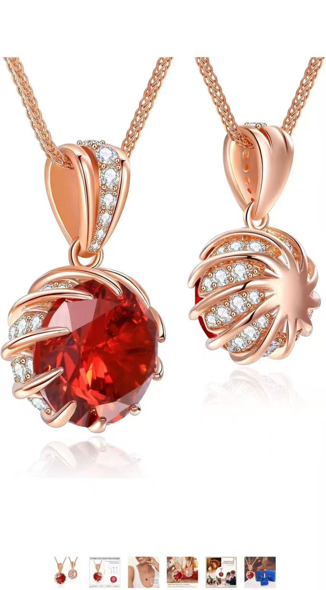 CeaKIev 6.0Carat (12.0mm) Round Cubic Zirconia Pendant Necklace 41 Accent Diamond-Cut Stones 18K Gold Platecd Rose Gold Chain Adjustable (18"+2") Wome