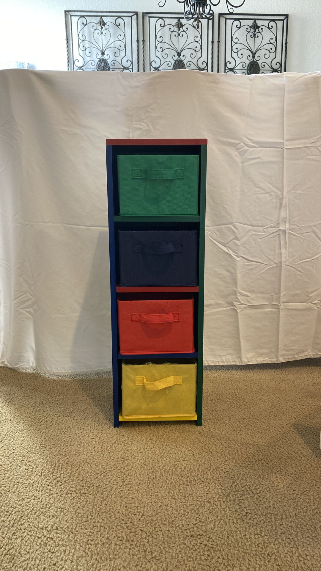 Multicolored toy organizer (colored canvas cubes included)