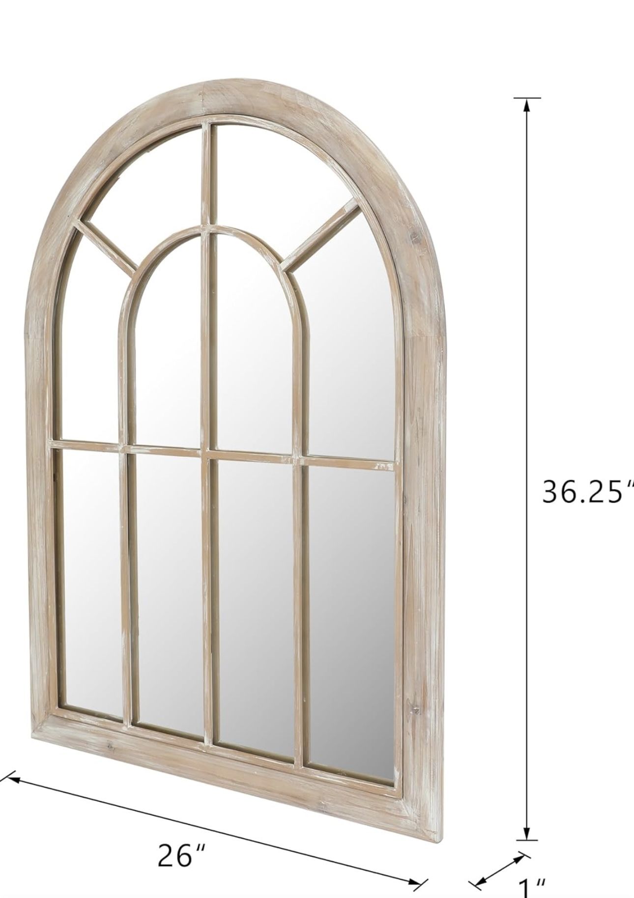 26x36 Inches Farmhouse Arched Window Pane Wall Mirror, Large Vintage Decorative Wooden Mirror for Li