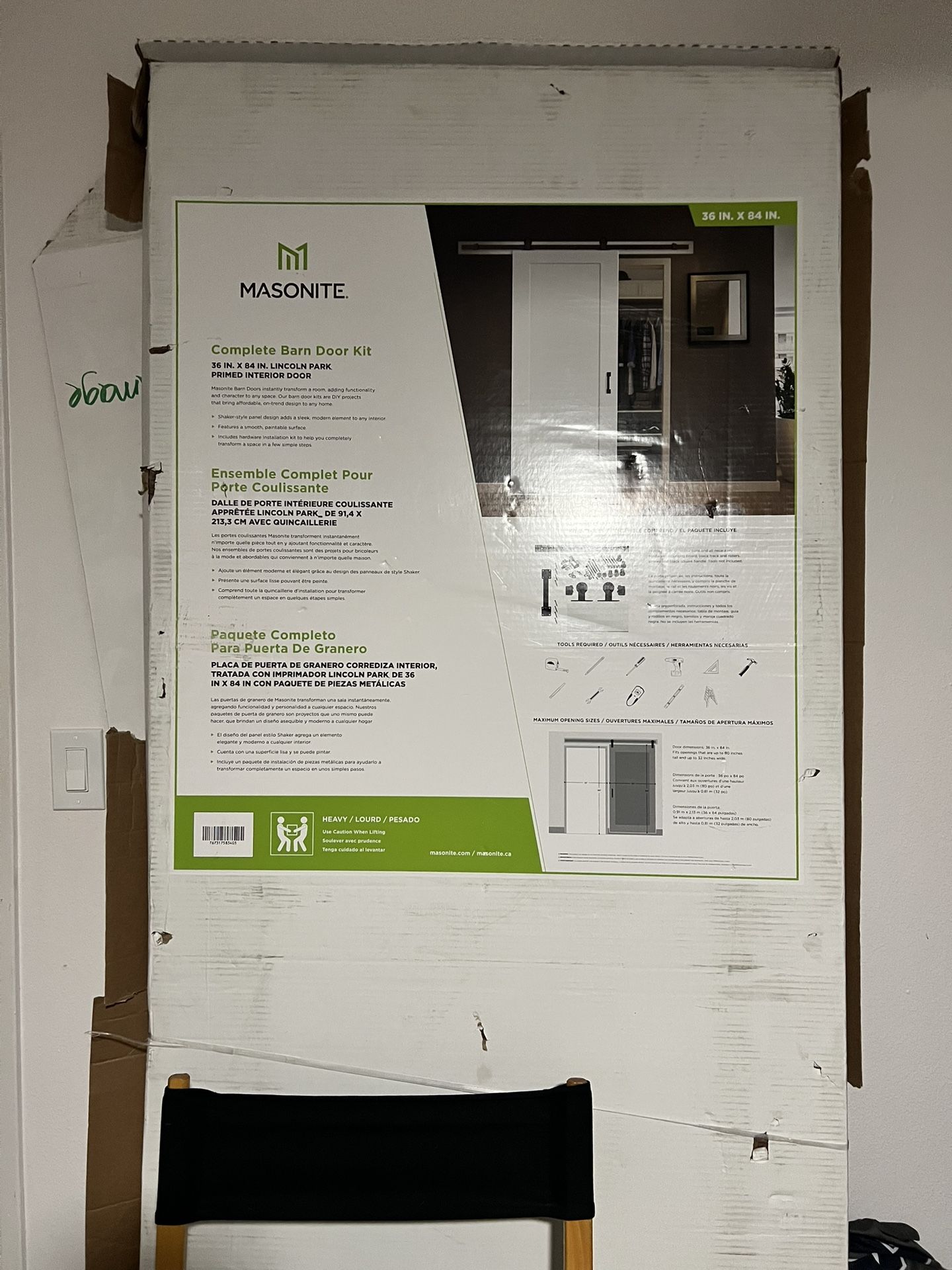 NEW barn door (open box) with hardware. Pickup in Whittier 36 in x 84 in Color: white