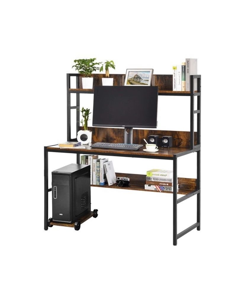 Sundale Computer Desk, 48“ Office Desk, Large Space Writing Table with Storage Bookshelf & Mobile CPU Stand, Retro Brown
