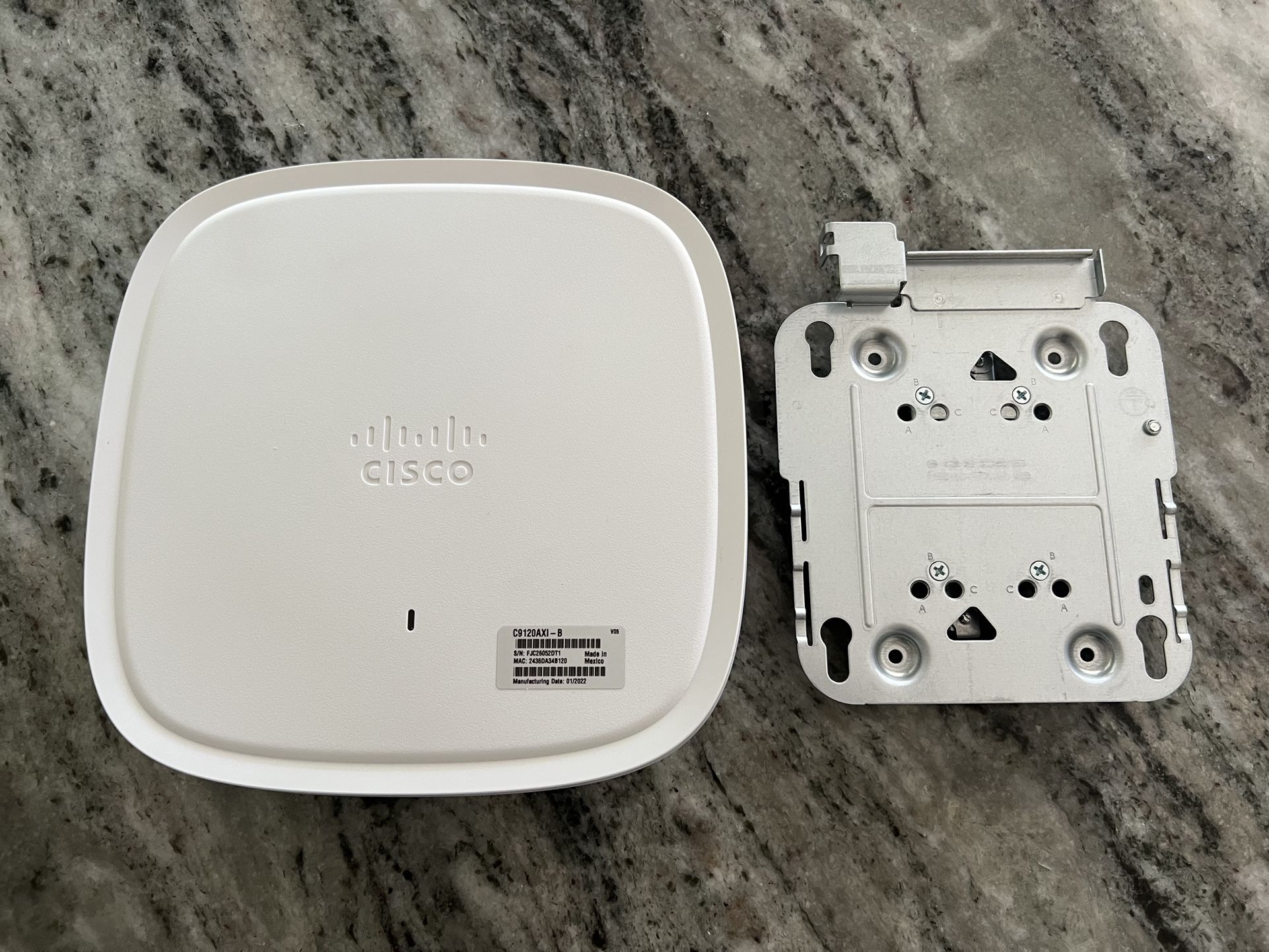 Cisco catalyst wireless access point with mounting bracket. C9120AXI-B.
