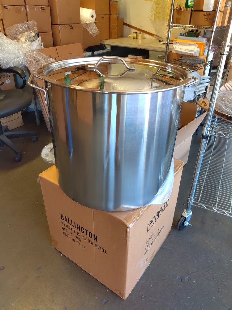 It is a brand NEW 100 quart with a small dent that happened in transit. We are showing the pictures. We sell this pot on Amazon for $179.99 It is a great pot for steaming tamales, canning seafood or just huge batches of soup, Please understand the price is firm Pots like this sell for over $200 in restaurant supply
