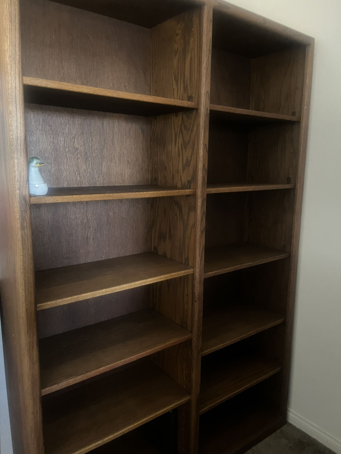 Book case need to sell. Measures 6ft H x 4ft wide x 12 3/4 inches wide outside. Shelves measure almost 12”. Very good condition. Pick up only.