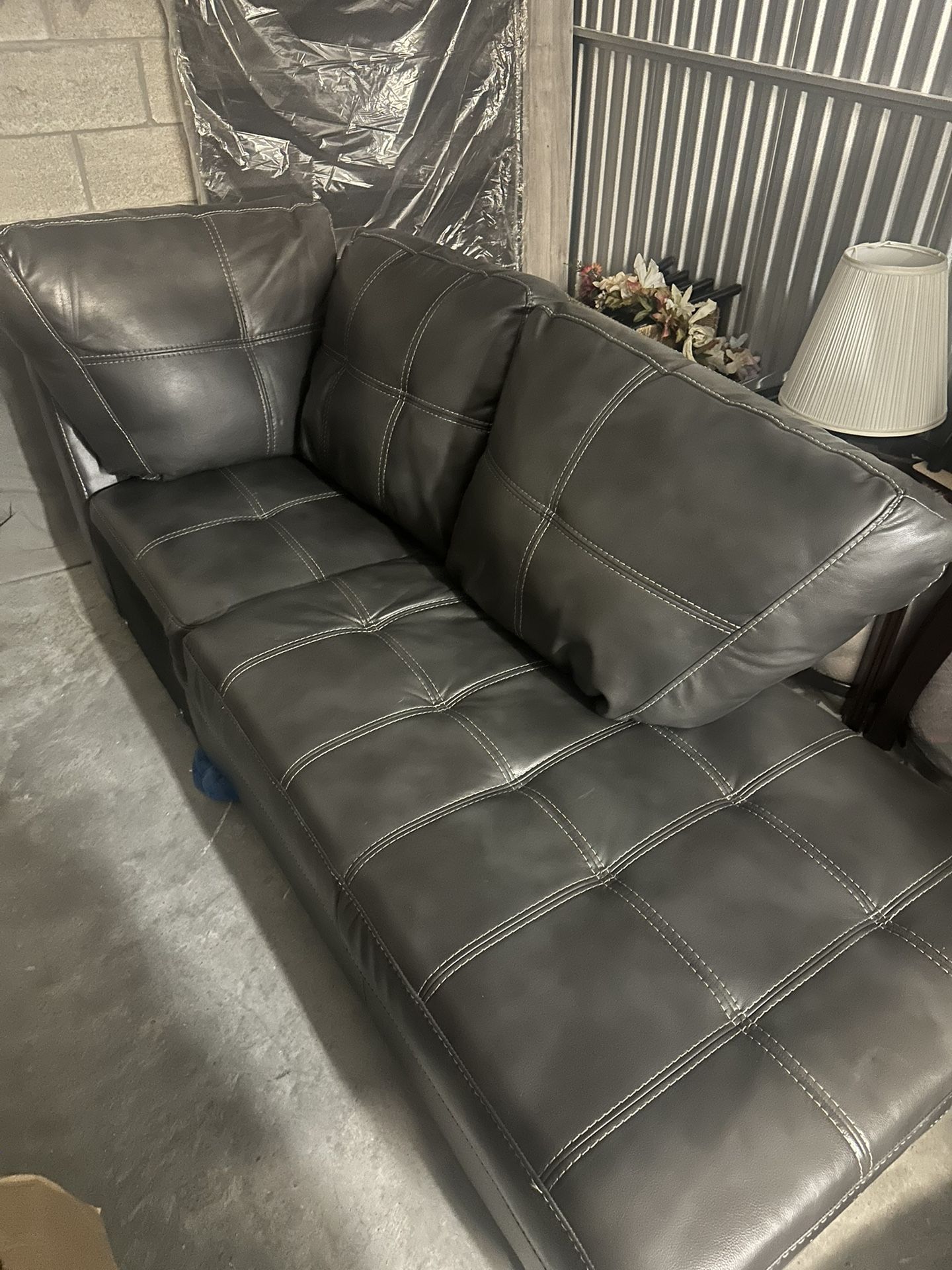Two piece pretty big comes with all cushions needs some maintenance with the cleaning simple wipe down and barely used
