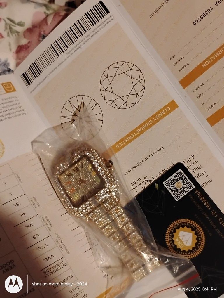 Unisex 100% authentic moissanite diamond watch designer logos don't get much nicer than this with g r a certified paperwork certified diamonds you register it as soon as you get it right on the g r a website information will be with the watch