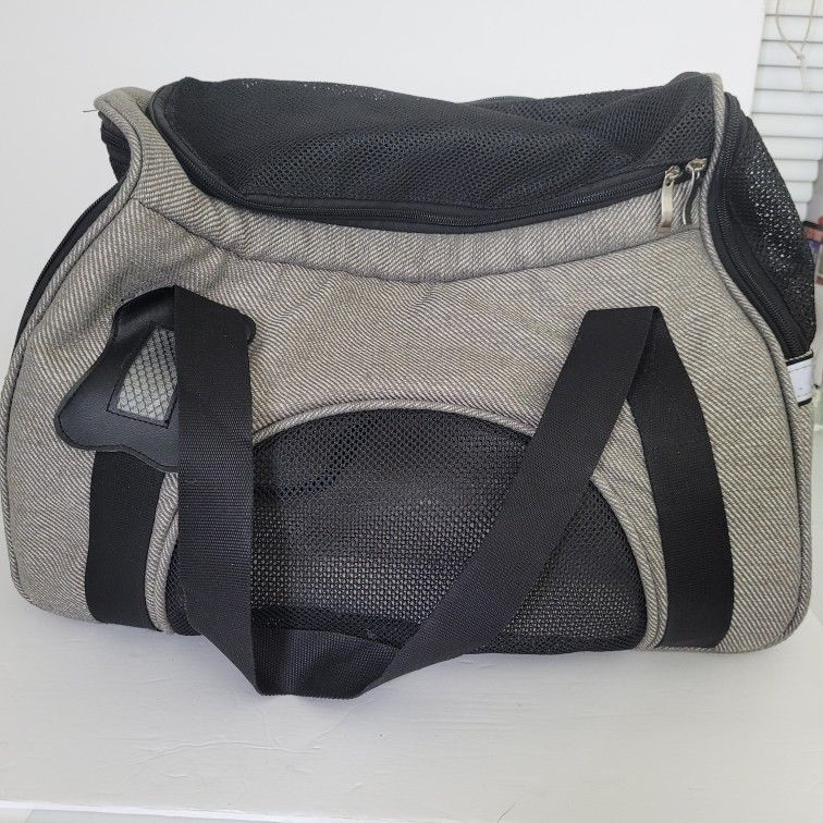 Medium sized pet carrier bag. In good used condition. Cushioned inside lining. Sold as-is.