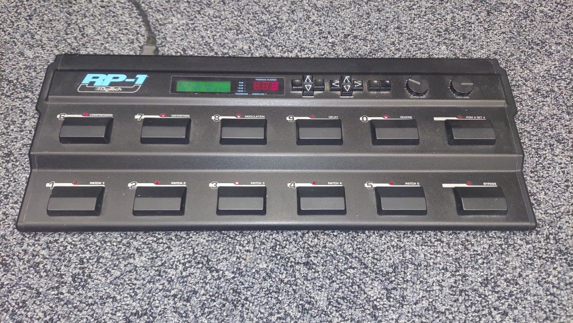 The DigiTech RP-1 (released around 1992) was a pioneering all-in-one floor guitar processor, merging rackmount preamps and effects into a rugged pedalboard with 75 presets, MIDI control, and the ability to stack up to 9 digital effects (chorus, delay, reverb, compression, etc.) for powerful, versatile tones, making it a significant, quality unit for its era, even used today for its unique sounds and MIDI control capabilities. With manual
