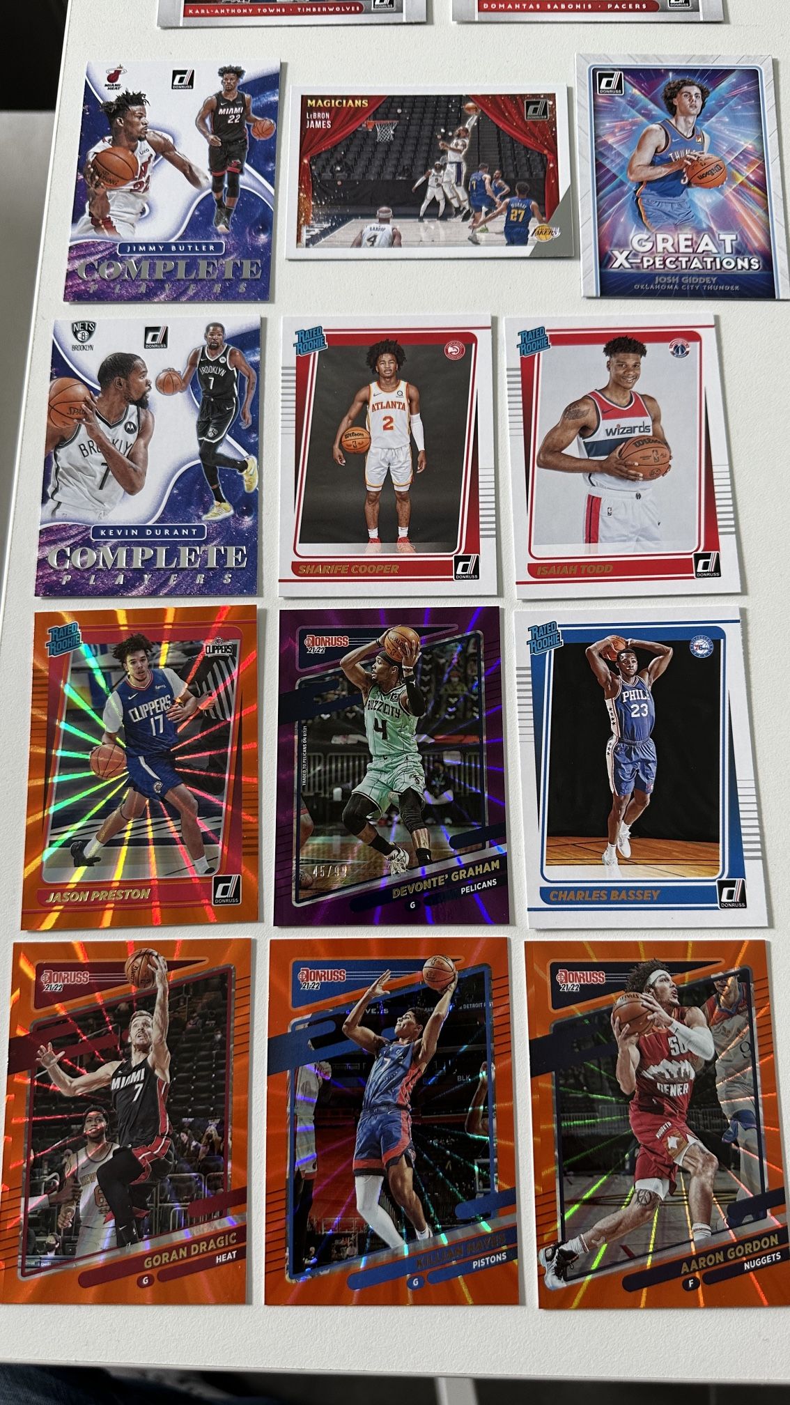 Brand new Panini NBA Donruss Cards Offer includes all shown cards LeBron James Magicians Kevin Durant complete Devonte Graham limited no. 45/99 Jason Preston Prange Laser Rookie and many other great cards!!!