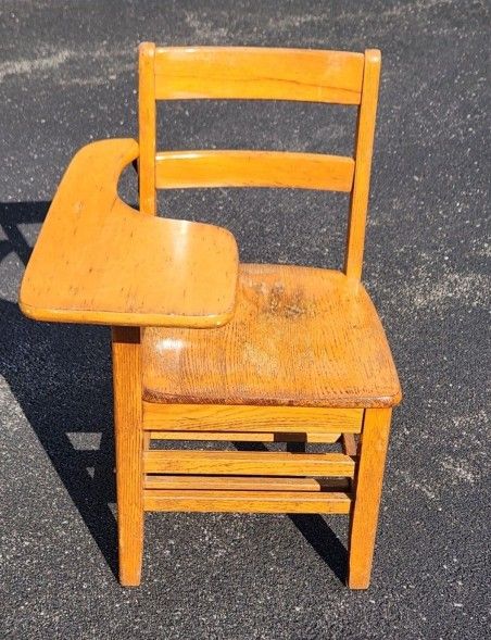 Vintage Child's School Desk Solid Wood with Attached Chair 1960s Please see all the pictures.