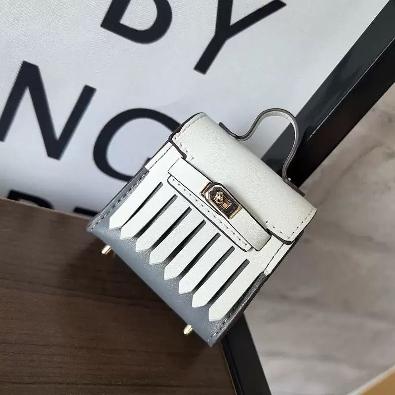 Bring effortless style to your bag or car with this chic handmade mini Kelly-inspired bag charm in a classic grey and white color combo. Featuring elegant tassel fringe and gold-tone hardware, this versatile accessory can be used as a handbag charm, car mirror hanger, or AirPods case. • Condition: New, handmade • Color: Grey & White • Material: Faux leather • Size: Approx. 6.5 x 9 x 3 cm • Features: Tassel fringe, mini turn-lock closure, gold-tone feet • Usage: Bag charm, car hanging accessory, AirPods holder, collectible • Note: This is a handmade item. Due to the crafting process: • There is a very small, hardly noticeable mark on the leather surface (see photos). • The gold hardware has a tiny bit of natural wear from handling (see close-up). Please purchase only if you are comfortable with these handmade characteristics. Unique and stylish—perfect as a gift or personal accessory! Special price due to minor handmade marks—please see photos.