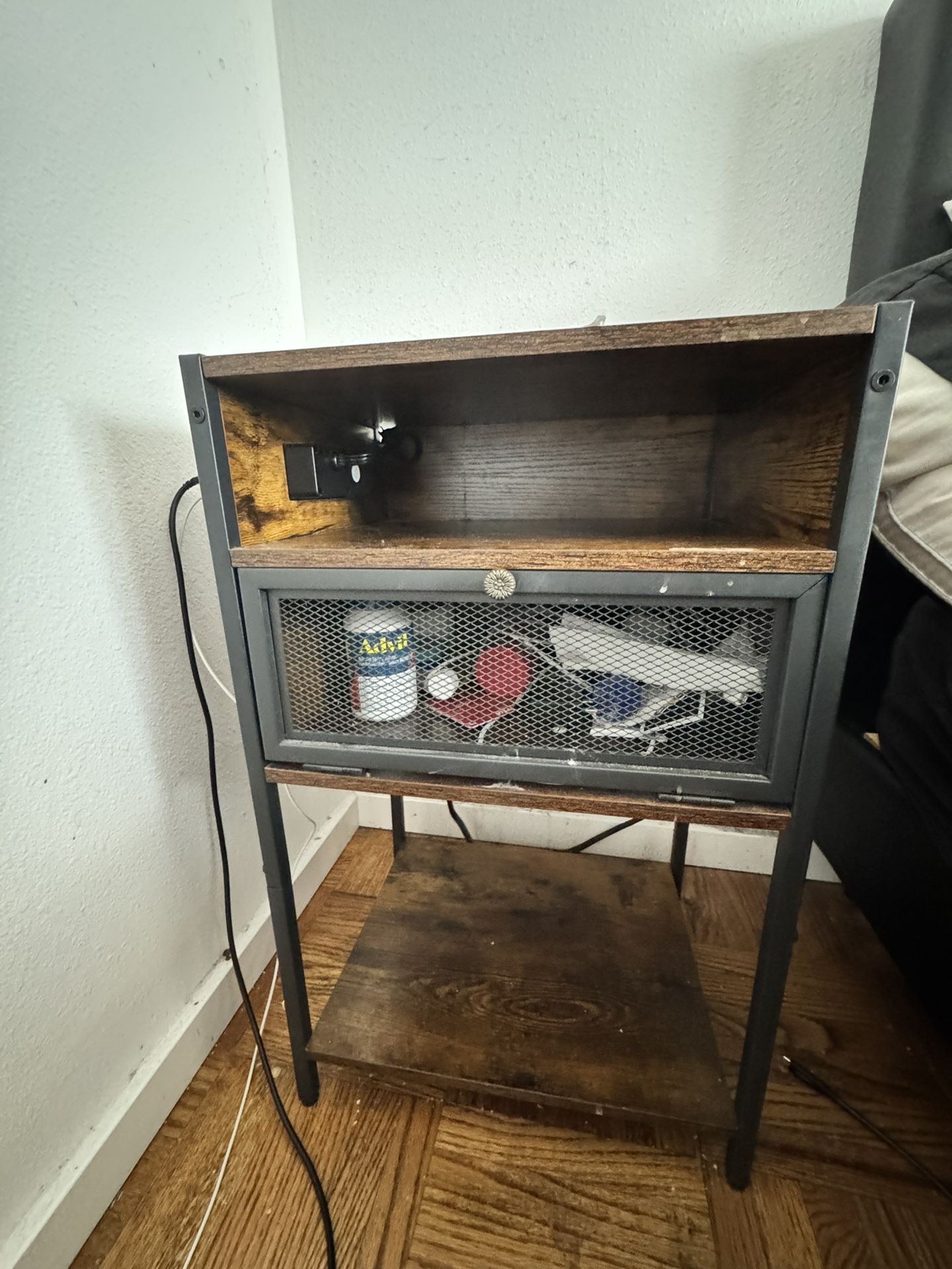 Nightstand with Charging Station, Bedside Tables with 3 Tiers Storage Space and Door, End Tables with USB Ports and Outlets