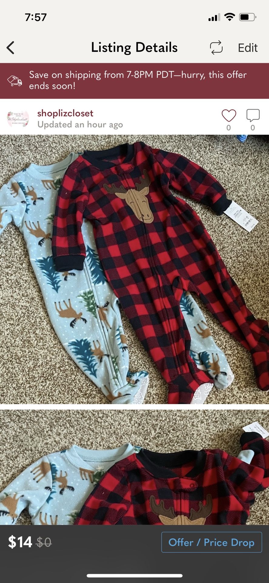 Carter’s Fleece Footed Pajamas 12 Months 2 pajamas NWT