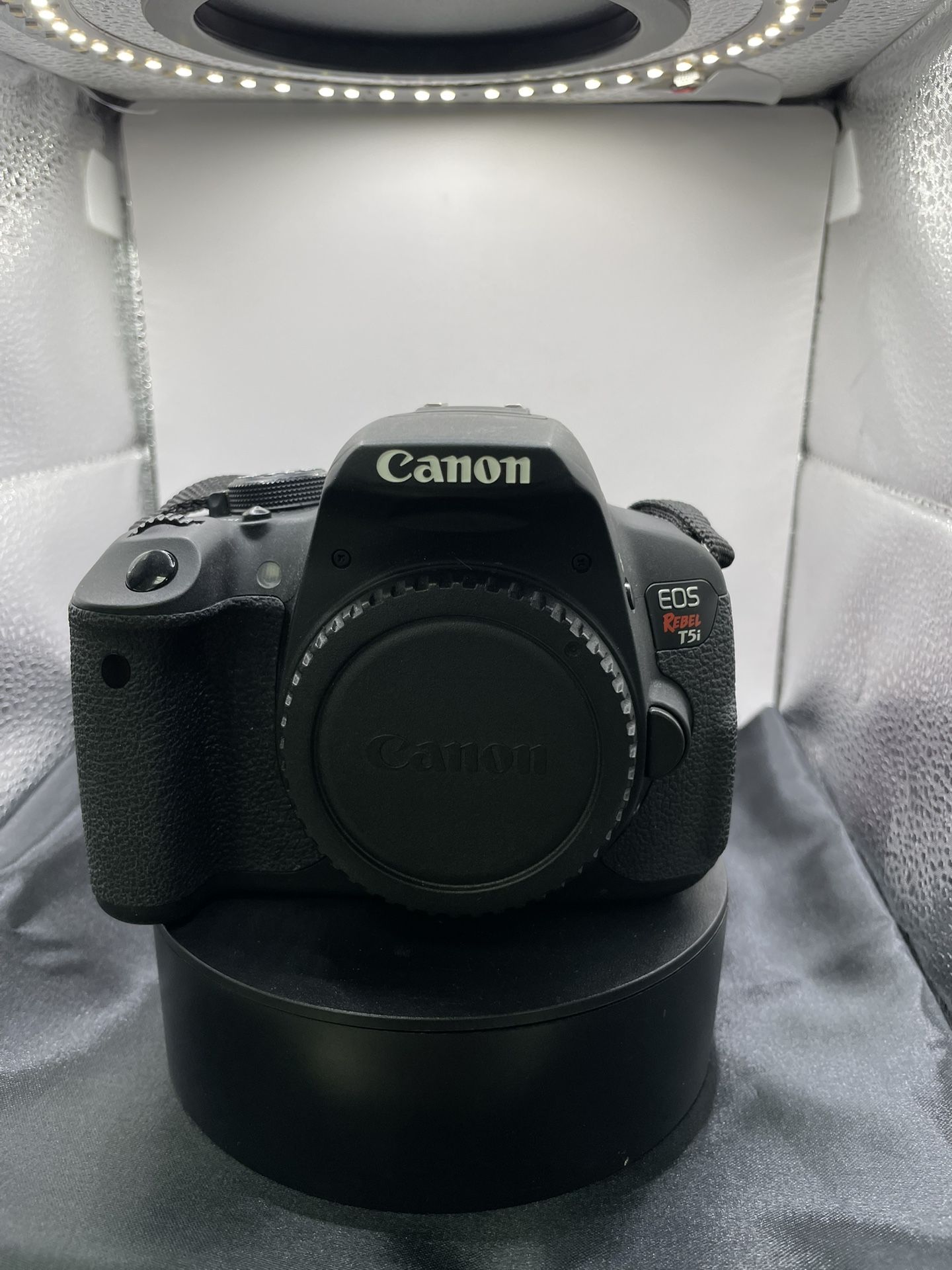 Canon EOS Rebel T5i (also known as the EOS 700D) is a popular entry-level DSLR from 2013, featuring an 18MP APS-C sensor, DIGIC 5 processor, 9-point all cross-type autofocus, and a key feature: a fully articulating touchscreen LCD, making it great for video and varied shooting angles. It shoots 1080p Full HD video, offers ISO 100-12800 (expandable to 25600), and shoots up to 5 fps, providing a user-friendly experience with powerful features for beginners and enthusiasts alike. No battery No charger Only a bag
