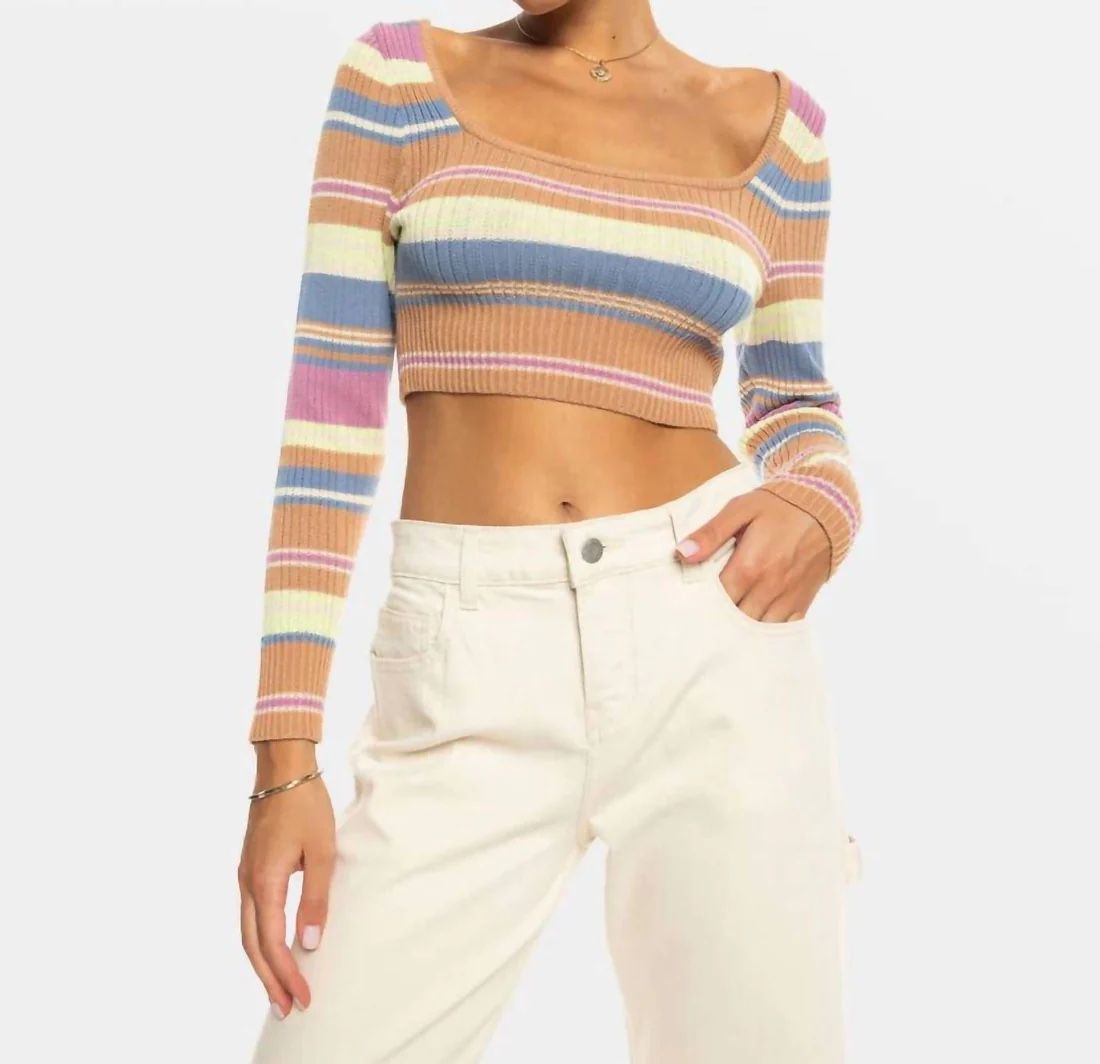 EUC - no flaws Brand: Roxy Original price: $74 Size: Medium Color: Camel Switchback Stripe Cropped length ~Measurements~ Bust: 27” Waist: 23” Length: 10.5” Sleeve length: 24.5” Material: - 100% cotton