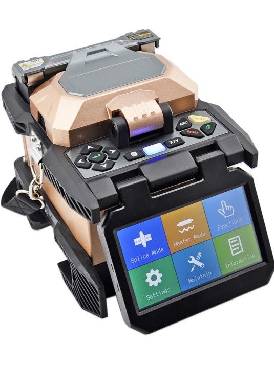 Key Technical Facts Matter – 1) 4 high precision motors; 2) 7s fast splicing, 18s highly efficient heating; 3) 0.02dB ultra-low splicing loss; 4) 5mm fusion for ultra-short cleave length; 5) 320 times image magnification; 6) 300 groups of splice modes, 100 groups of heating modes, 10000 groups of fusion records storage Easy to Operate, Wide Compatibility – 1) 4.3-inch touch screen with graphical interfaces for smooth operation; 2) All-in-one fixture meets fusion demands of multiple optical fibers, jumpers and rubber-insulated wires; 3) Capable of dual-directional fusion; 4) Multiple fusion modes and heating modes are available Other Features – 1) High Precision Ceramic V-groove and ceramic presser foot, ensure fiber loading becomes more convenient and accurate, also easy for clean and maintenance; 2) Intelligent Heat Shrink, the heater won’t work until the fiber is detected by the embedded sensor to avoid scalding Pluggable large-capacity lithium-ion battery – 6800mAh built-in battery satisfies 220 times of splicing and heating, good for longer field work Compact Design, small and light -- 120mm (W)×130mm (H)×154mm (D), min. 1.7kg without battery. This Fiber Optic Fusion Splicer is water-resistant, dust-resistant, shock-resistant, high-temp-resistant. The light-weighted carry case can be used as working bench. Rich accessories such as spare electrodes, miller stripper, are also included in this toolbox