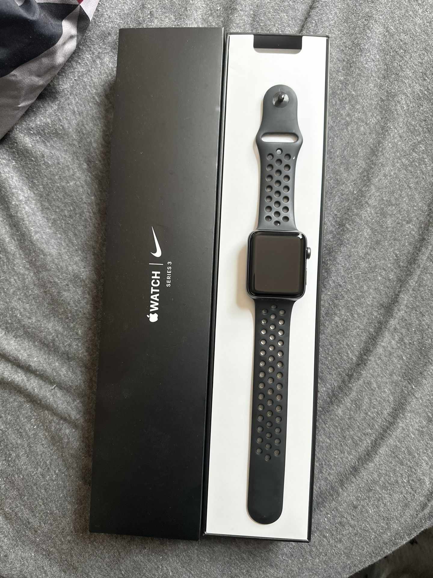 Basically brand new Apple Watch Series 3 (Nike+ version). The watch comes with original box, documents, both original band sizes, and charger.