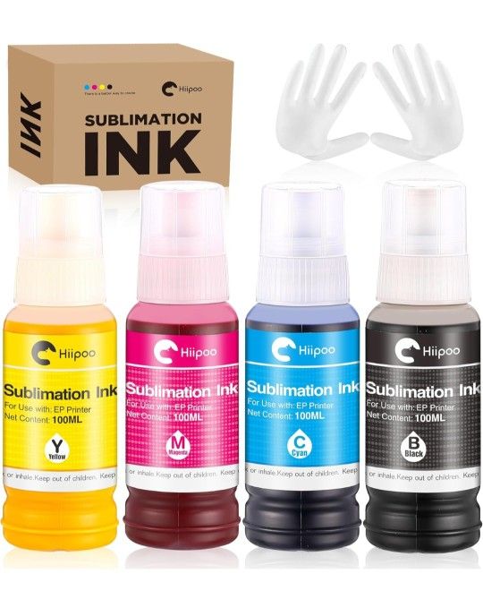 Hiipoo Sublimation Ink 522 Refilled Bottles Work with ET-2720 ET-2760 ET-2800 ET-15000 ET-2803 ET-2850 ET-3760 ET-4800 ET-4760 Inkjet Printer Heat Pre